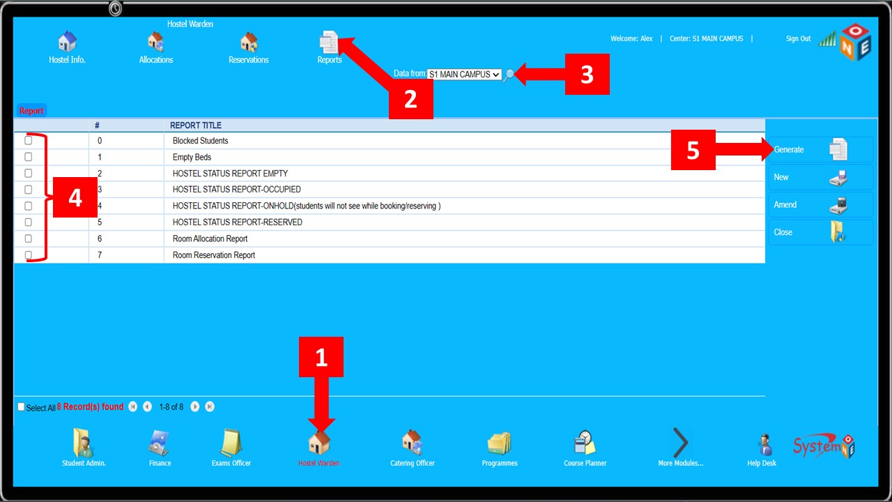 You are also able to generate important hostel reports such as Occupancy, Reservation, Allocation… etc