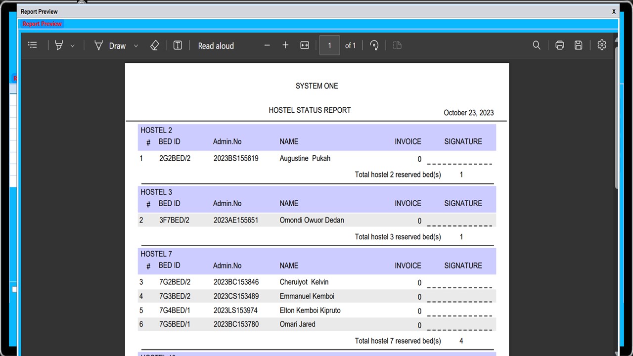- The figure below is a representation of the Hostel Status(Reserved) report