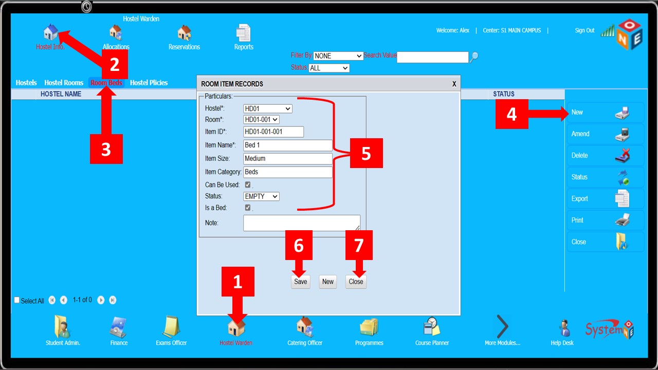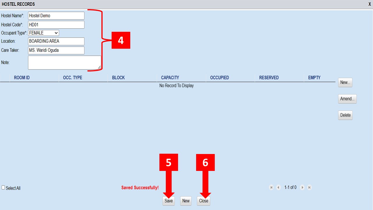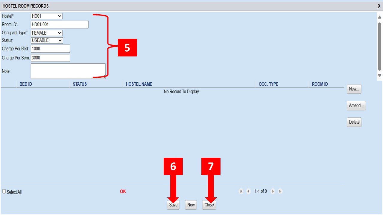 Hostel Room Recordspage shown below, fill in the relevant room details as shown inStep 5 -