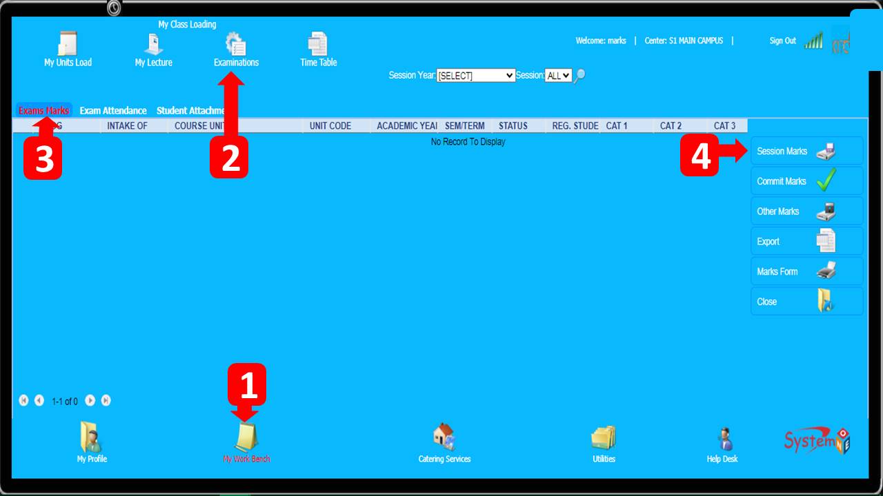 STEP 4: Click Onsession marksbutton on right handside,Once you have clicked onsession marksas shown below.Figure 1; -