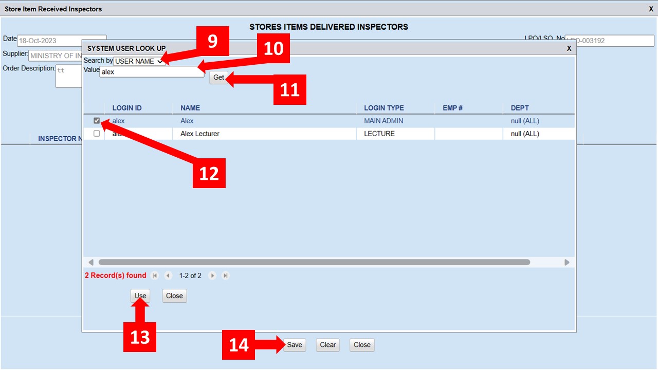 Search Value(Step 10) and click theGetbutton (Step 11) to display the user(s) -