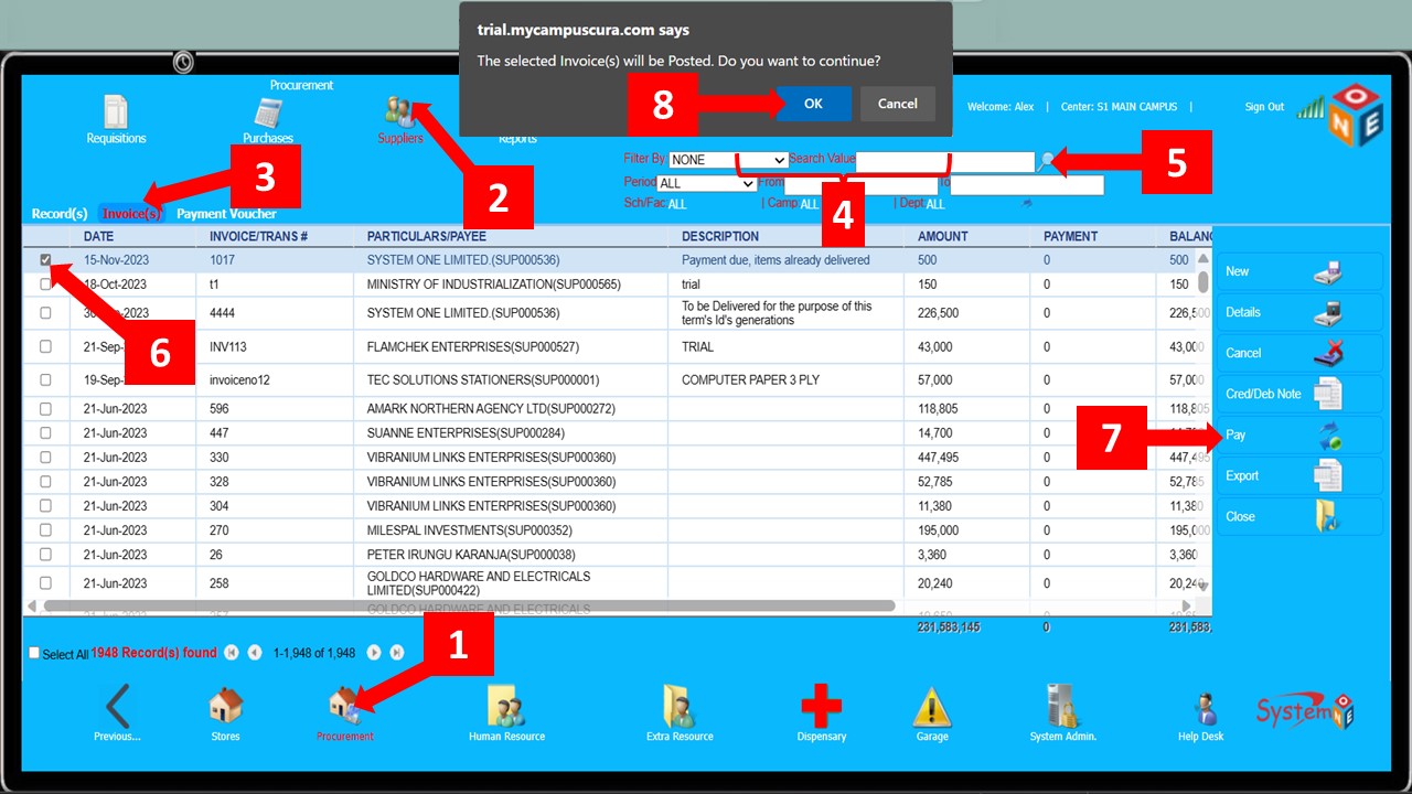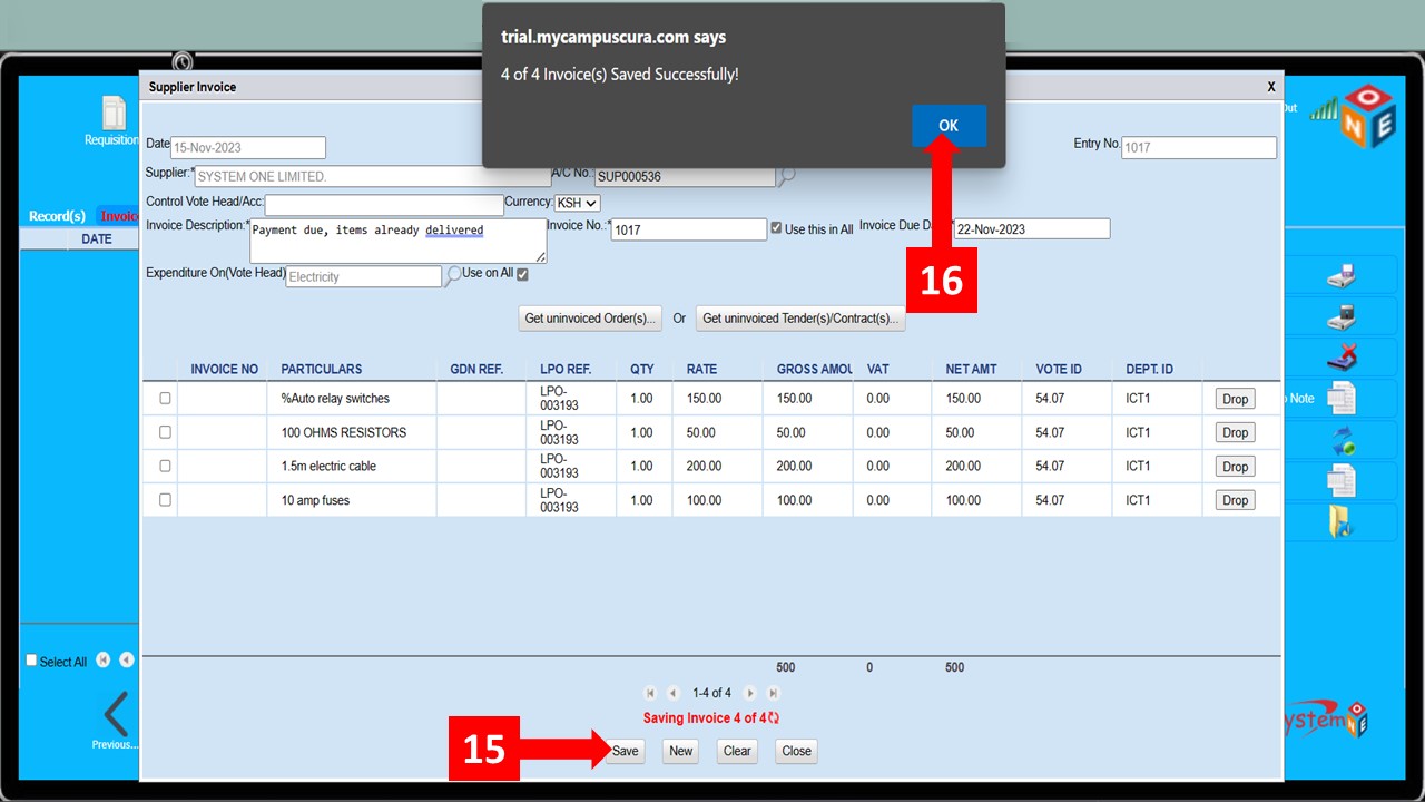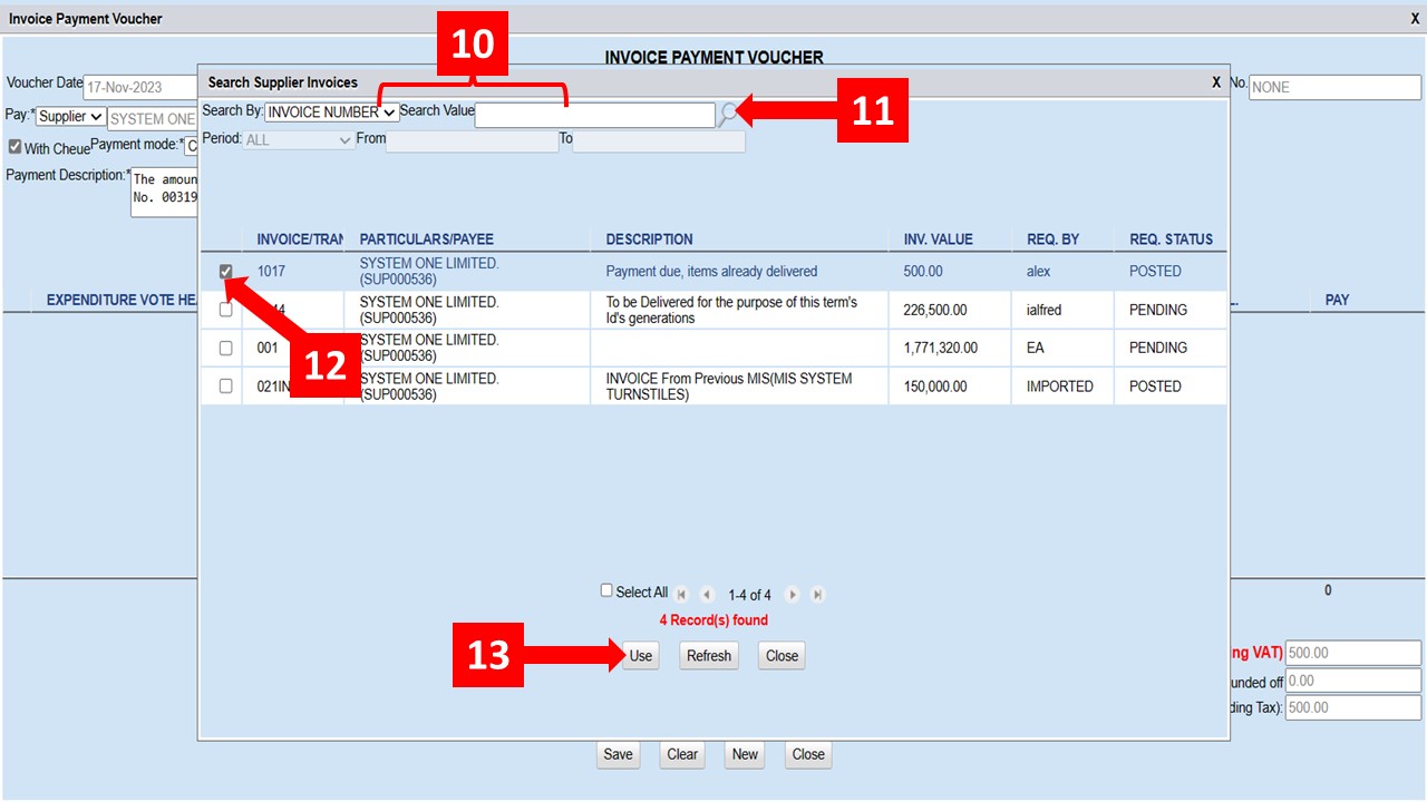 Step 10and proceed toStep 11to display a list of all the Invoices -