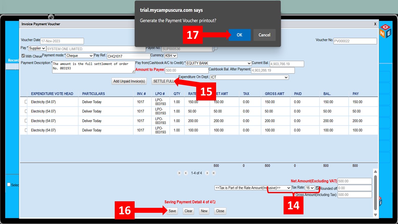 Settle Fullbutton as shown inStep 15to offset the whole amount -